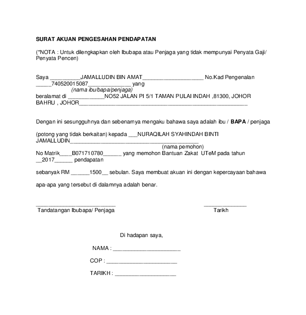 Contoh Surat Akuan Pengesahan Pendapatan Bagi Yang Bekerja Sendiri Gantikan Slip Gaji Edu Bestari from edubestari.com We did not find results for: Maybe you would like to learn more about one of these? Check spelling or type a new query. Gaji contoh surat pengesahan pendapatan.